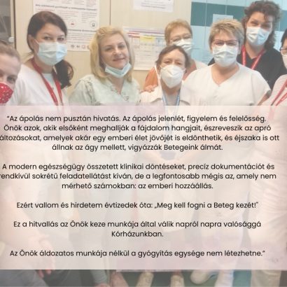 Főigazgatónk, Prof. Dr. Bedros J. Róbert levele: „Tisztelt Ápoló Kolléganők és Kollégák! Február 19-e, a ’48-as hős főápolónő, Kossuth Zsuzsanna születésének évfordulója, a Magyar Ápolók…